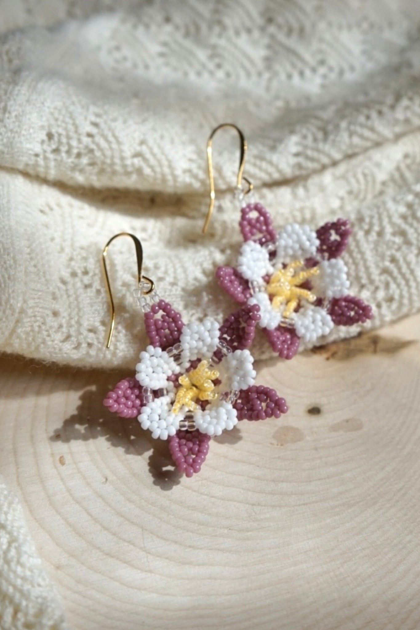 Inspired by the pink variety of Rocky Mountain columbine flowers. I did my best to recreate the beautiful layered blooms with this original design that has become one of my favorites!