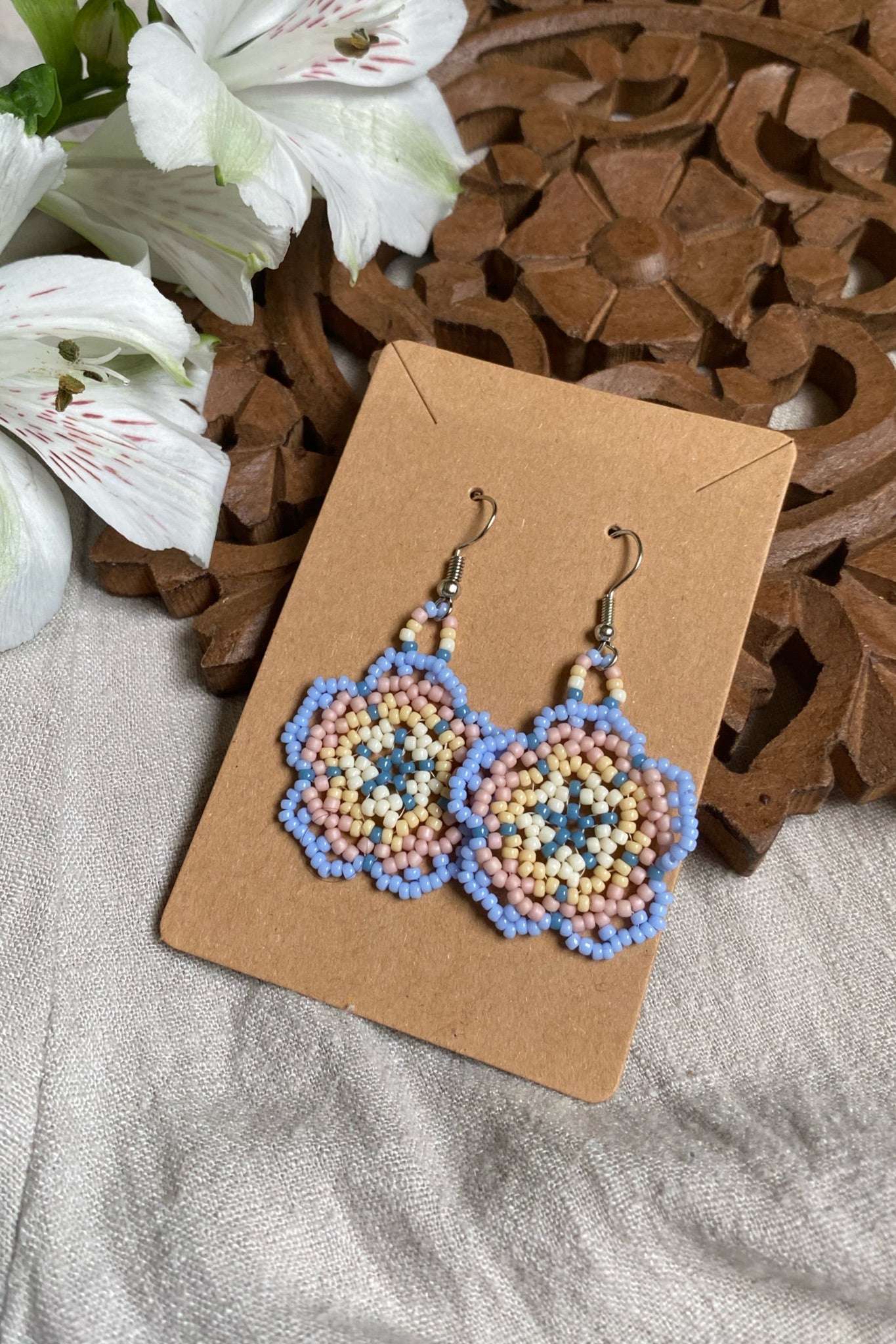These earrings measure approximately 1.25" across and are made with size 11/0 seed beads.