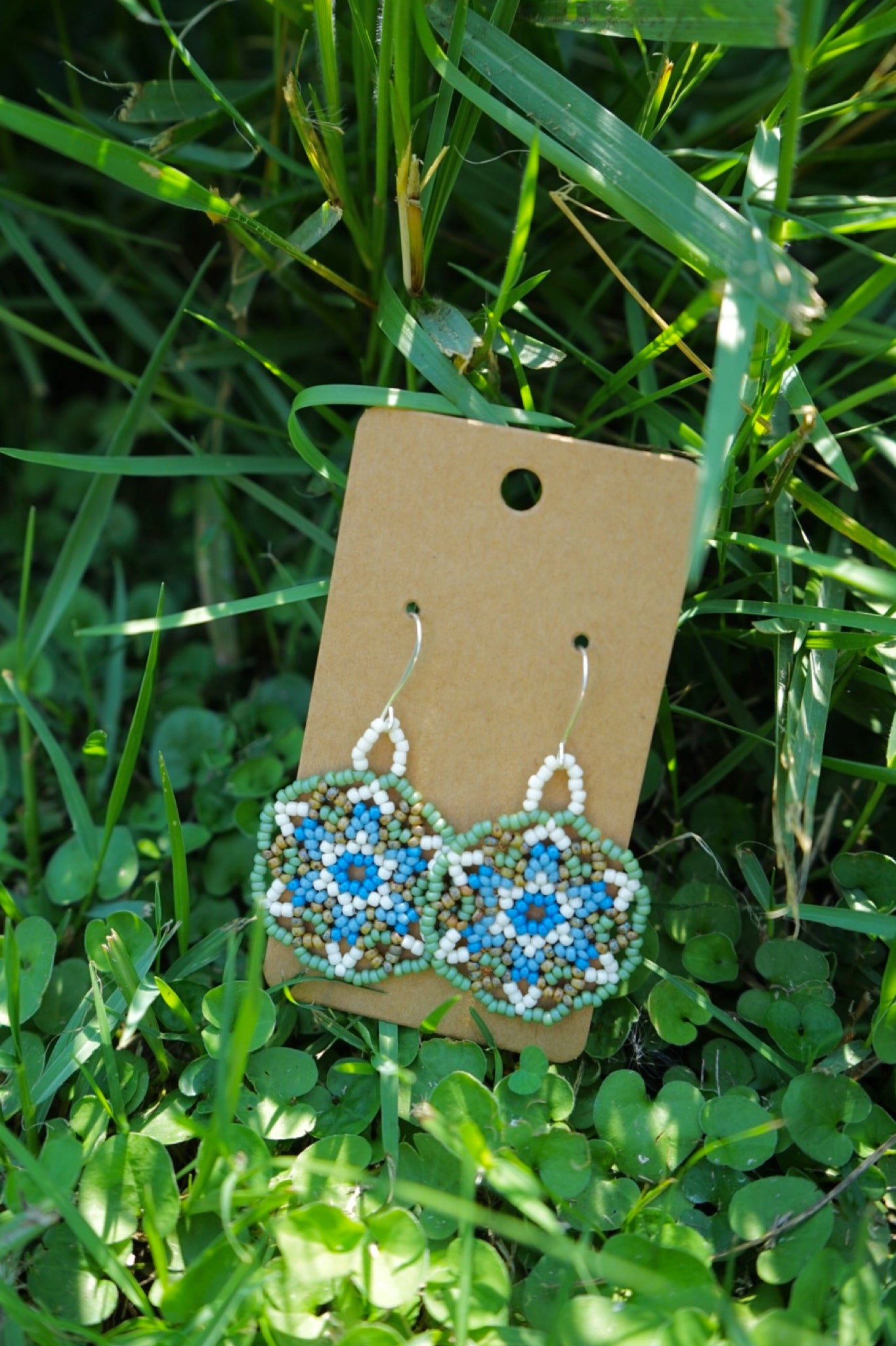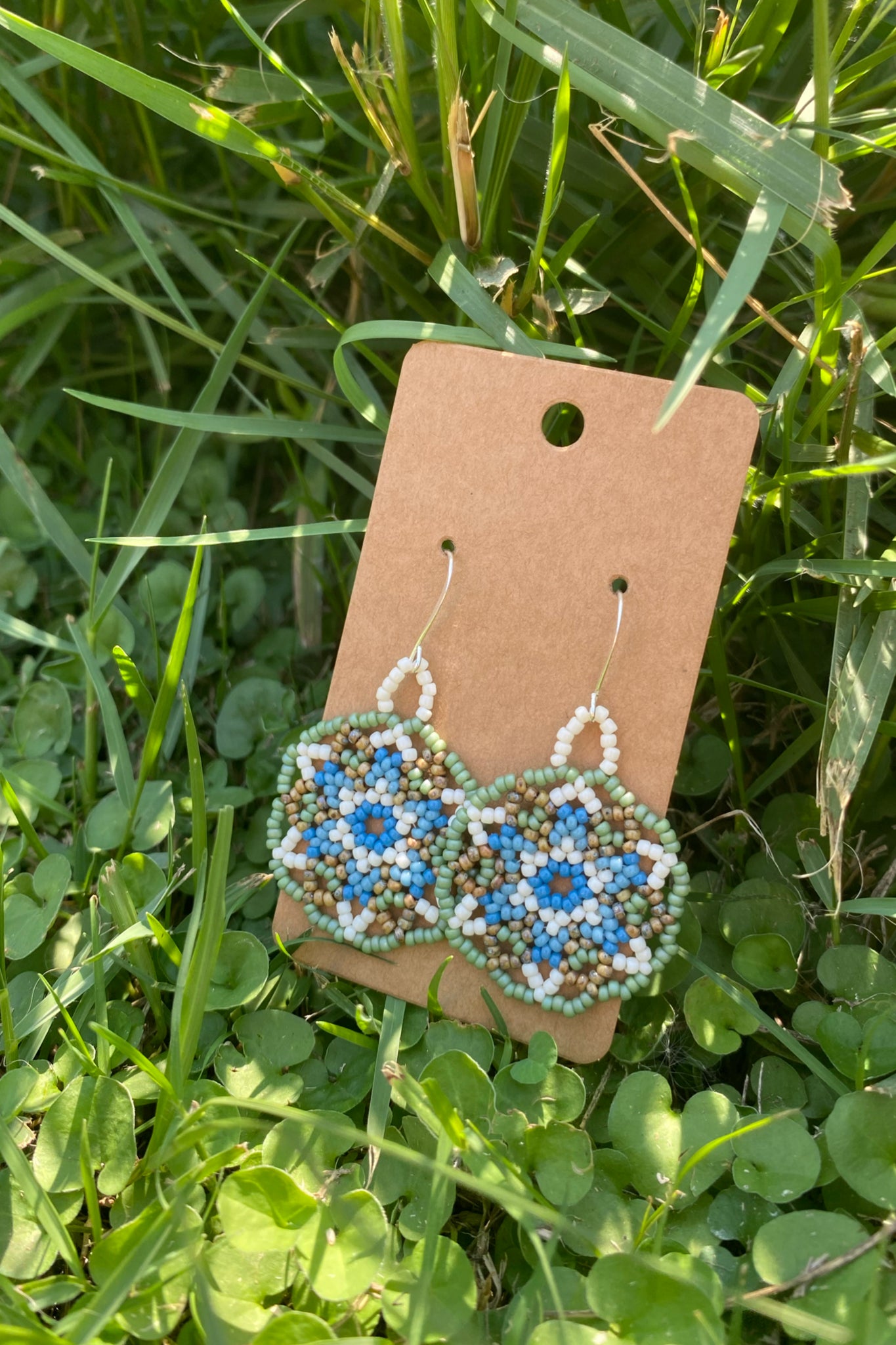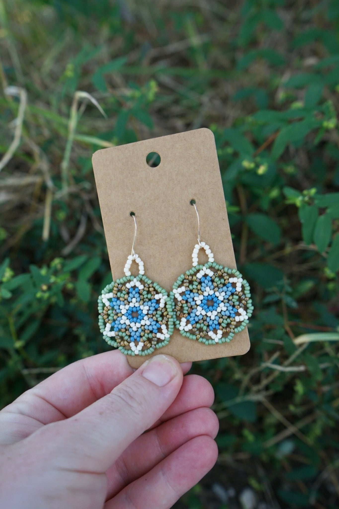 These earrings measure approximately 1.5" across and are made with size 11/0 seed beads.