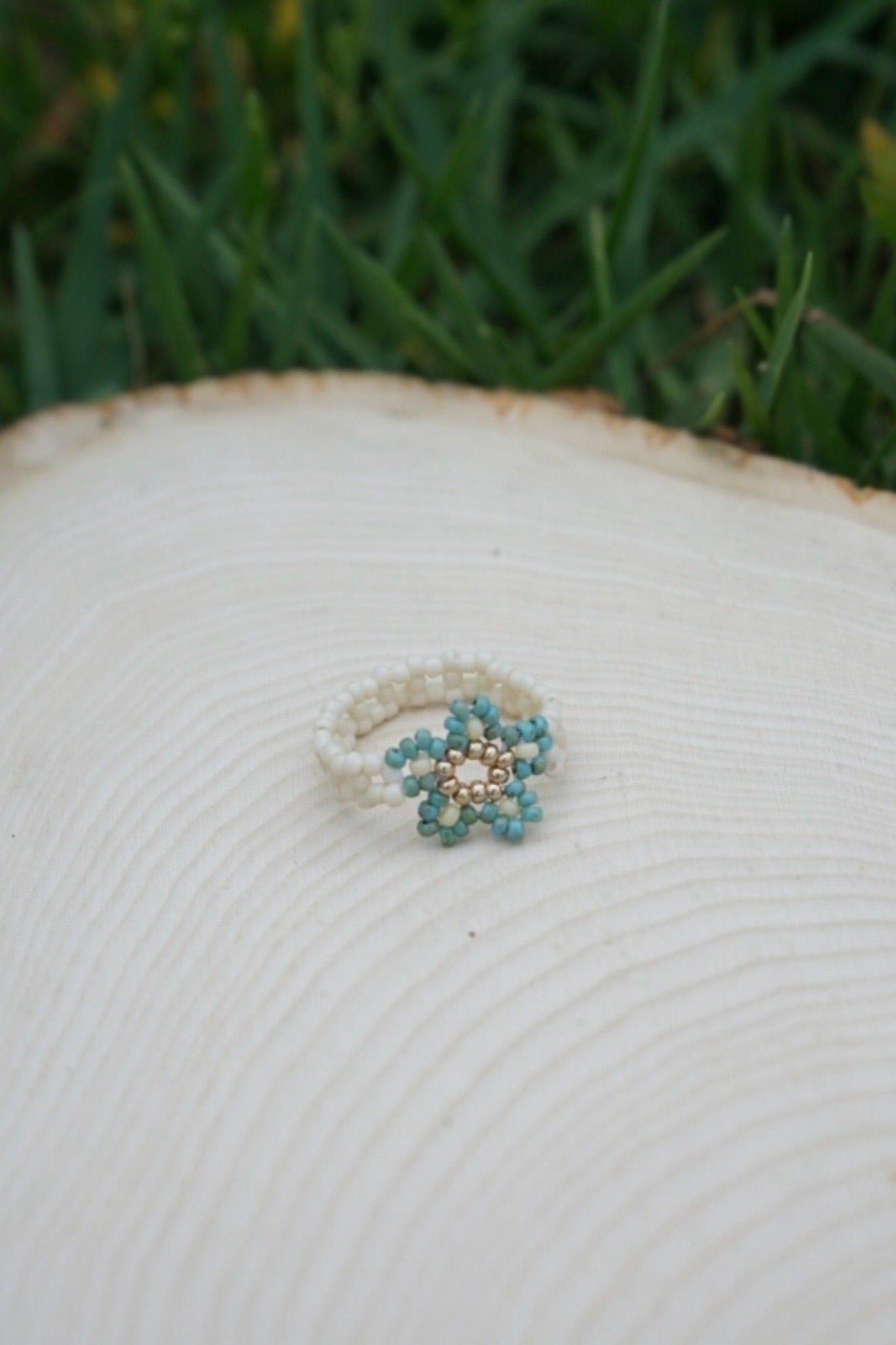 Turquoise and cream cinque ring (8.5)